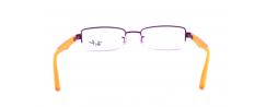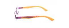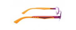 Frames of metal in construction nylor (borderless at the bottom of the lens). The color is purple with orange arms. This style is very distinctive to persons because it doesn't stresses the characteristics.