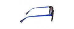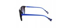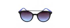 Κοκάλινα, στρογγυλά, στην απόχρωση του μαύρου με βραχίονες σε μπλε , απευθύνονται σε όσους αναζητούν ένα ζευγάρι γυαλιά ηλίου που να ξεχωρίζει για το στιλ του.