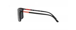 Σε τετράγωνο σχήμα, κοκάλινα, τα γυαλιά ηλίου EMPORIO ARMANI 4161 σε απόχρωση του μαύρου ενώ κροταφικά συναντάμε το λογότυπο του οίκου σε άσπρη απόχρωση με κόκκινο φόντο.