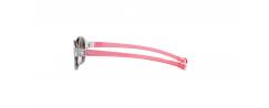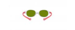 Σε κυκλικό σχήμα, τα γυαλιά ηλίου RAYBAN JUNIOR 9187S έχουν κοκάλινο σκελετό σε εντυπωσιακή ημιδιάφανη απόχρωση του γκρι και ροζ, ενώ οι βραχίονες φέρουν το λογότυπο του οίκου.