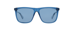 Σε τετράγωνο σχήμα, κοκάλινα, τα γυαλιά ηλίου POLAROID 6099S σε εντυπωσιακή ημιδιαφανή μπλε απόχρωση ενώ κροταφικά στους βραχίονες συναντάμε το λογότυπο του οίκου.