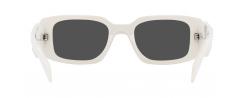Σε τετράγωνο σχήμα πεταλούδας, τα γυαλιά ηλίου PRADA 17WS διαθέτουν κοκάλινο σκελετό σε δυναμική άσπρη απόχρωση ενώ εντυπωσιάζουν οι βραχίονες με τον ιδιαίτερο σχεδιασμό τους καθώς και το λογότυπο του οίκου σε ασημί χρώμα.