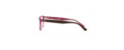 Σε τετράγωνο σχήμα, τα γυαλιά οράσεως RayΒan 5428 σε εντυπωσιακή καφέ & ροζ απόχρωση ενώ οι βραχίονες φέρουν κροταφικά το λογότυπο του οίκου.