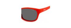 Σε τετράγωνο σχήμα, τα γυαλιά ηλίου POLAROID K006/S έχουν κοκάλινο σκελετό σε εντυπωσιακή κόκκινη απόχρωση ενώ στους βραχίονες συναντάμε το λογότυπο του οίκου.
