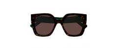 Σε εντυπωσιακό τετράγωνο σχήμα, τα γυαλιά ηλίου GUCCI 1300S έχουν κοκάλινο σκελετό σε απόχρωση της καφέ ταρταρούγας δίνοντας έτσι ένα ιδιαίτερο στυλ. Ένταση και στυλ δίνει το λογότυπο του οίκου σε χρυσή απόχρωση στους βραχίονες.