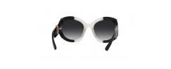 Με κοκάλινο σκελετό σε οβαλ σχήμα, τα γυαλιά ηλίου MARC JACOBS 722/S σε δυναμική ασπρόμαυρη απόχρωση ενώ στους βραχίονες συναντάμε το χρυσό εμβληματικό στρογγυλό λογότυπο JJ.
