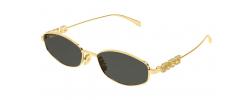 Σε οβαλ σχήμα, τα γυαλιά ηλίου GUCCI 1802S έχουν μεταλλικό σκελετό σε χρυσή απόχρωση ενώ κροταφικά στους βραχίονες συναντάμε το λογότυπου του οίκου σε ανάγλυφη μορφή δίνοντας επιπλέον λάμψη.