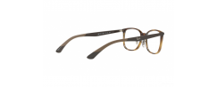 Κοκάλινα, τετράγωνα γυαλιά οράσεως RayBan 7142 σε εντυπωσιακή απόχρωση της καφέ ταρταρούγα ενώ στους βραχίονες όπου συναντάμε το λογότυπο του οίκου δίνοντας έτσι ένα ιδιαίτερο στυλ.