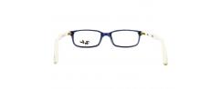 Κοκάλινα, τετράγωνα γυαλιά οράσεως RayBan 1525 συνδυάζουν αρμονικά την απόχρωση του μπλε σε μετόπη και άσπρους βραχίονες όπου συναντάμε το λογότυπο του οίκου δίνοντας έτσι ένα ιδιαίτερο στυλ.