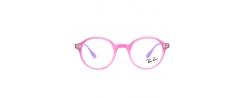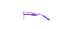 Κοκάλινα παιδικά γυαλιά οράσεως RayBan 1561 σε στρογγυλό σχήμα με ροζ απόχρωση στην μετόπη ενώ οι βραχίονες σε μωβ όπου συναντάμε και το λογότυπο του οίκου.