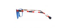 Σε τετράγωνο σχήμα τα γυαλιά οράσεως Dolce & Gabbana 1238 συνδυάζουν αρμονικά την απόχρωση του ματ μπλε και κόκκινου ενώ στους βραχίονες κροταφικά συναντάμε ανάγλυφο το λογότυπο του οίκου.