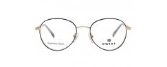 Σε στρογγυλό σχήμα τα γυαλιά οράσεως KWIAT 10114 A συνδυάζουν αρμονικά την χρυσή και μαύρη απόχρωση δίνοντας ένταση και στυλ.