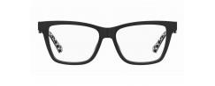 Κοκάλινος σκελετός σε δυναμικό σχήμα πεταλούδας, τα γυαλιά οράσεως Moschino Love 610 συνδυάζουν αρμονικά την μαύρη απόχρωση εξωτερικά στον σκελετό με το ασπρόμαυρο μοτίβο εσωτερικά. Ιδιαίτερη σχεδιαστική λεπτομέρεια αποτελεί η "καρδούλα" με το λογότυπο του οίκου στους βραχίονες.