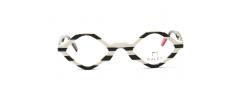 Καινοτόμα γυαλιά οράσεως, με κοκάλινο σκελετό σε ιδιαίτερο σχήμα, τα γυαλιά οράσεως Dalet Frutiger σε εντυπωσιακή ασπρόμαυρη ριγέ απόχρωση πλαισιώνοντας τέλεια το πρόσωπό σας.