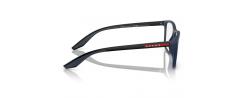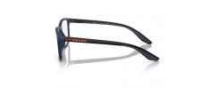 Τετράγωνα με κοκάλινο σκελετό τα γυαλιά οράσεως PRADA SPORT 01QV σε εντυπωσιακή μπλε απόχρωση ενώ στους βραχίονες συναντάμε το λογότυπο του οίκου σε κόκκινο πλαίσιο.