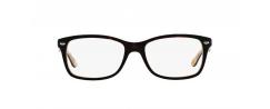 Σε wayfarer σχήμα τα γυαλιά οράσεως Rayban 5228 διαθέτουν κοκάλινο σκελετό σε δυναμικό συνδυασμό σκούρου ματ καφέ ενώ την εσωτερική επιφάνεια καλύπτουν γήινες αποχρώσεις με το λογότυπο της εταιρείας.